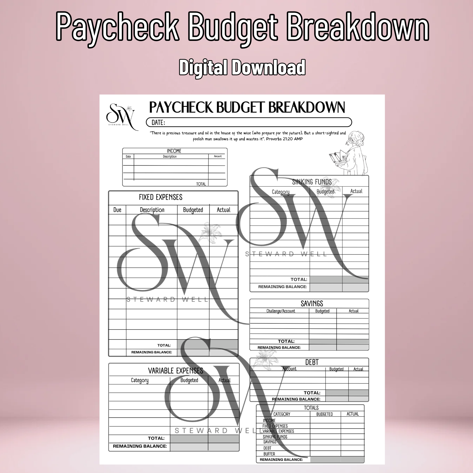 The Paycheck Budget Breakdown is your ultimate tool for managing your income with clarity and confidence. Designed to help you budget each paycheck, this tool makes it easy to plan bills, savings, and spending before payday even hits your account.